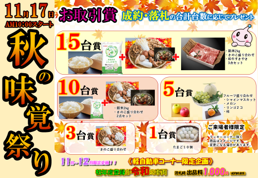 オークション会場 > イベント一覧 > 秋の味覚祭りAA/JU東京