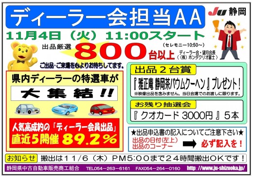 オークション会場 > 2025年11月04日 > ディーラー会担当AA/JU静岡
