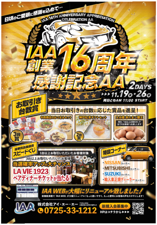 オークション会場 > IAA大阪のイベント一覧 > IAA創業16周年感謝記念AA part2/IAA大阪