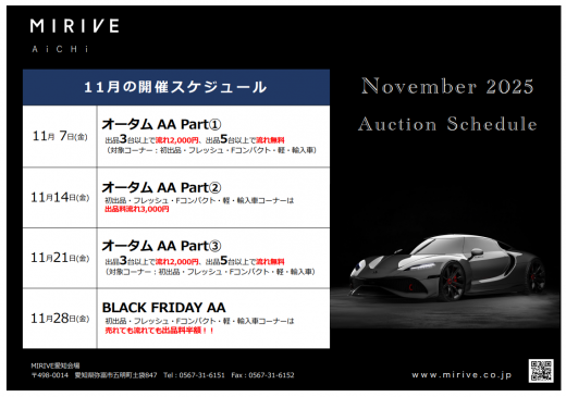 オークション会場 > 2025年11月14日 > オータムAA Part②/MIRIVE愛知