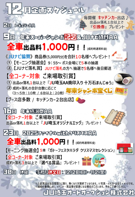 オークション会場 > JU埼玉オートオークションのイベント一覧 > 年末感謝祭AA/JU埼玉オートオークション