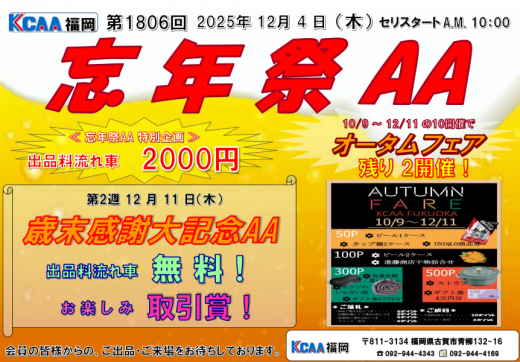 オークション会場 > イベント一覧 > 忘年祭AA/KCAA福岡