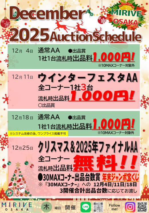 オークション会場 > 近畿のイベント一覧 > クリスマス&2025年ファイナルAA/MIRIVE 大阪