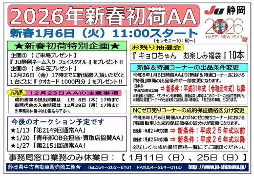 オークション会場 > 2026年01月06日 > 2026年新春初荷AA/JU静岡