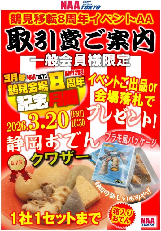 オークション会場 > イベント一覧 > 鶴見会場8周年記念AA/NAA東京