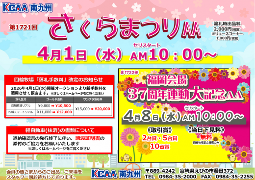 オークション会場 > 2026年04月01日 > さくらまつりAA/KCAA南九州