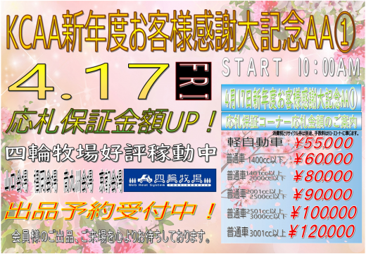 オークション会場 > 2026年04月17日 > 新年度お客様感謝大記念AA①/KCAA山口