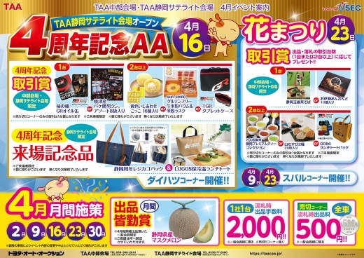 オークション会場 > 東海・北陸のイベント一覧 > TAA静岡サテライト会場オープン4周年記念AA/TAA中部