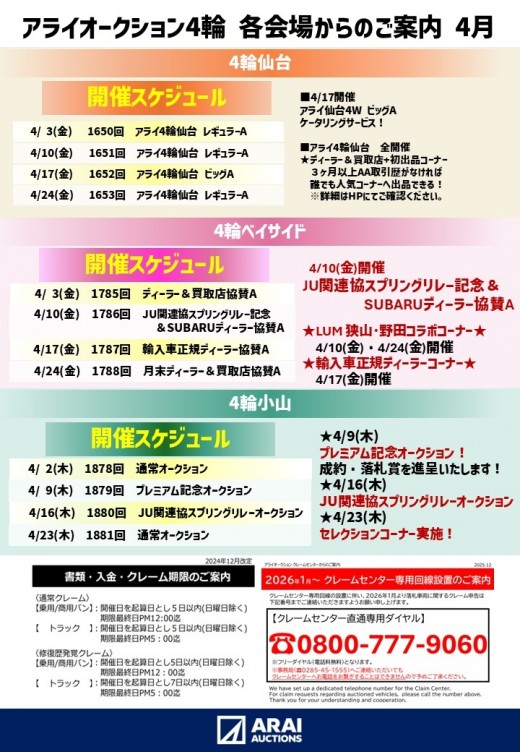 オークション会場 > 関東・甲信越のイベント一覧 > JU関連協スプリングリレーオークション/アライオークション4輪小山