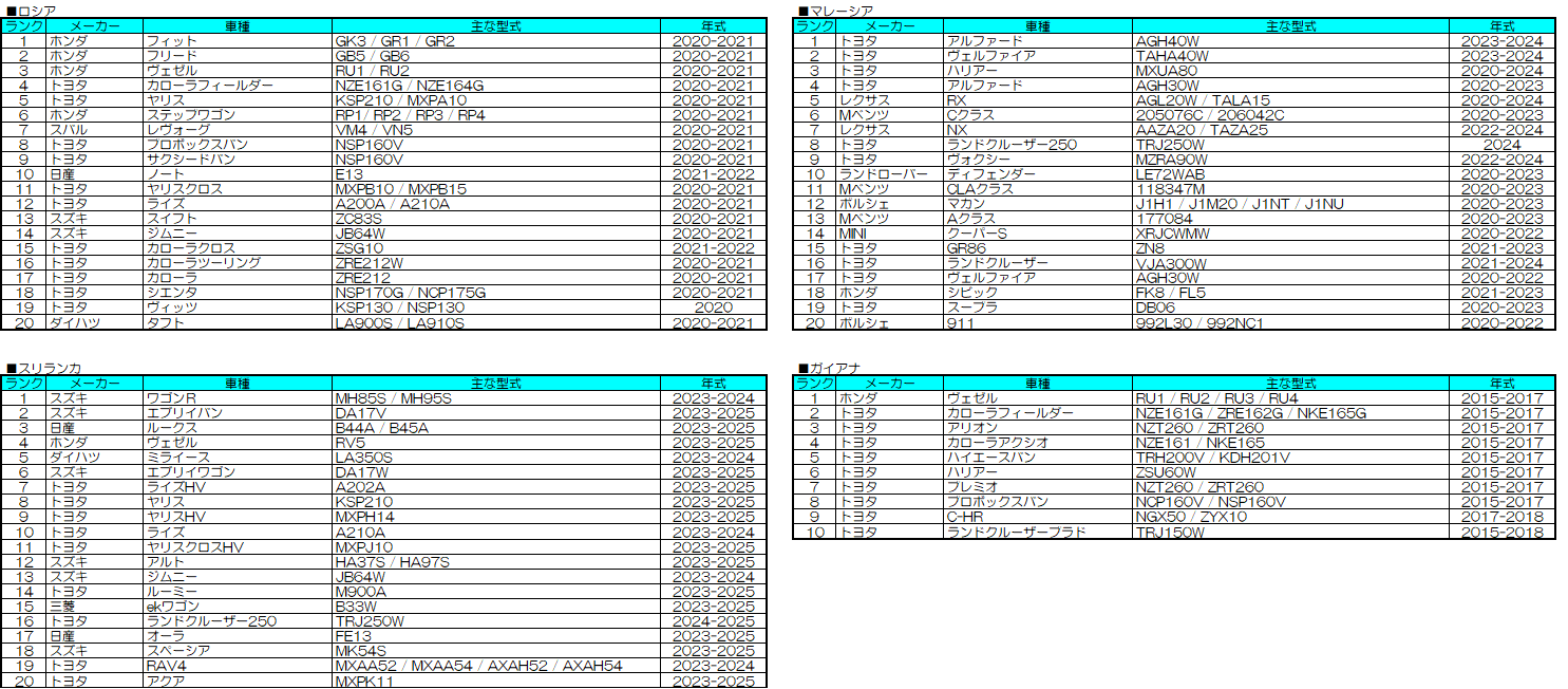 上位20カ国で伸び率が高かった国は、スリランカ、キプロス、タンザニアなどで、前月比較ではタンザニアでは、