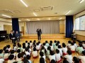 あいさつに立った大川社長は「子どもたちの元気な声と笑顔は地域の宝。少しでもお役に立てれば幸い。今後も地域とともに歩み、子どもたちの居場所を作れるような機会を設けていきたい」と、地域貢献へ想いを述べた。