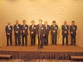 手前右から、宮部名誉顧問・北薗会長・金城副会長・山下副会長。後ろ、右から中尾副会長、永松副会長、中野副会長、黒木副会長。