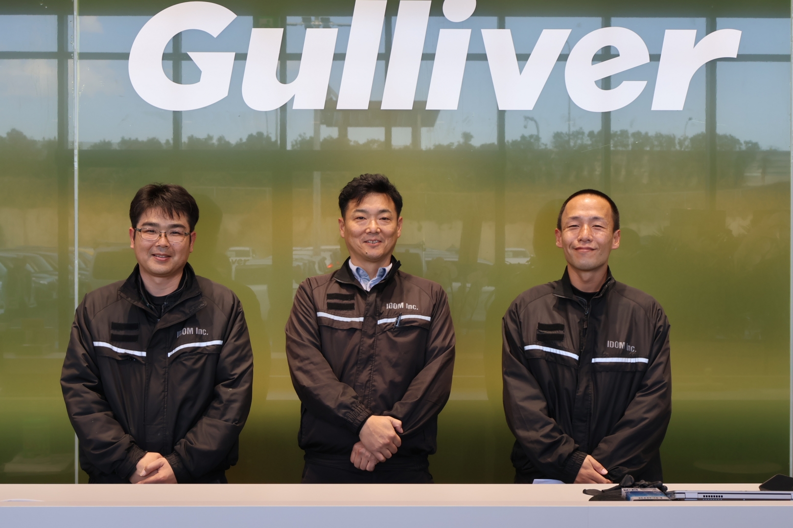 写真左から、笹崎孝工場長、桐谷一栄支店長、中島昇平アフターサービス事業部工場長