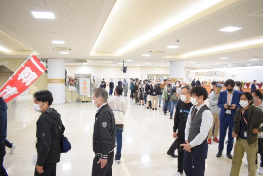 ワンコイン果物朝市に早朝から長蛇の列ができた