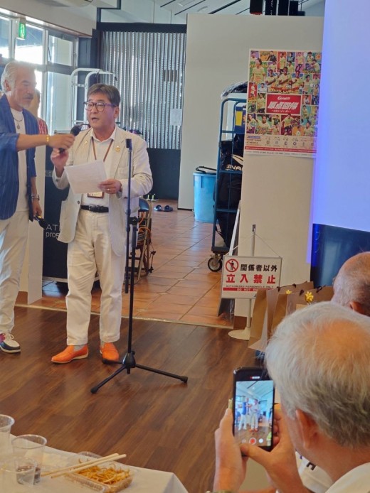 表彰式で挨拶する坂東博仁社長