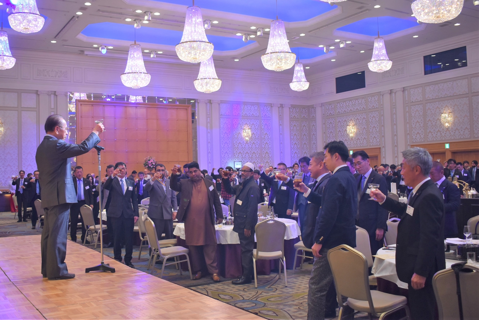 新名交電気・竹内社長の発声で乾杯が行われた