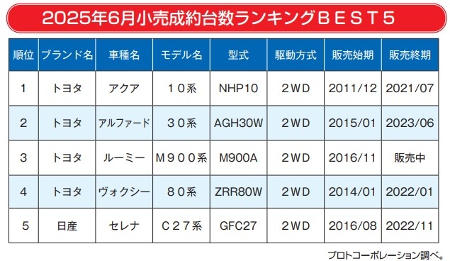2025年6月小売成約台数ランキングBEST5