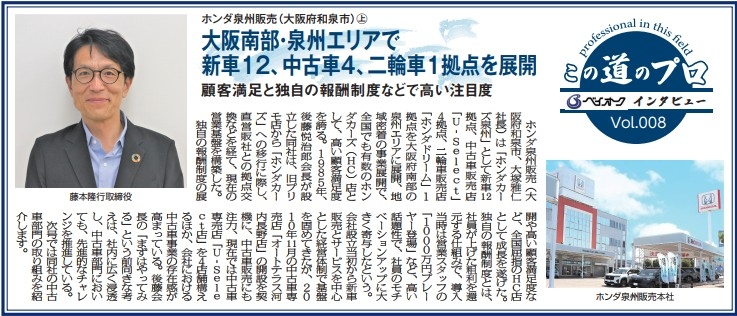 TOP > ニュース > 企業・団体関連ニュース > 【この道のプロ】Vol.008 ホンダ泉州販売(大阪府和泉市)㊤ > 画像一覧