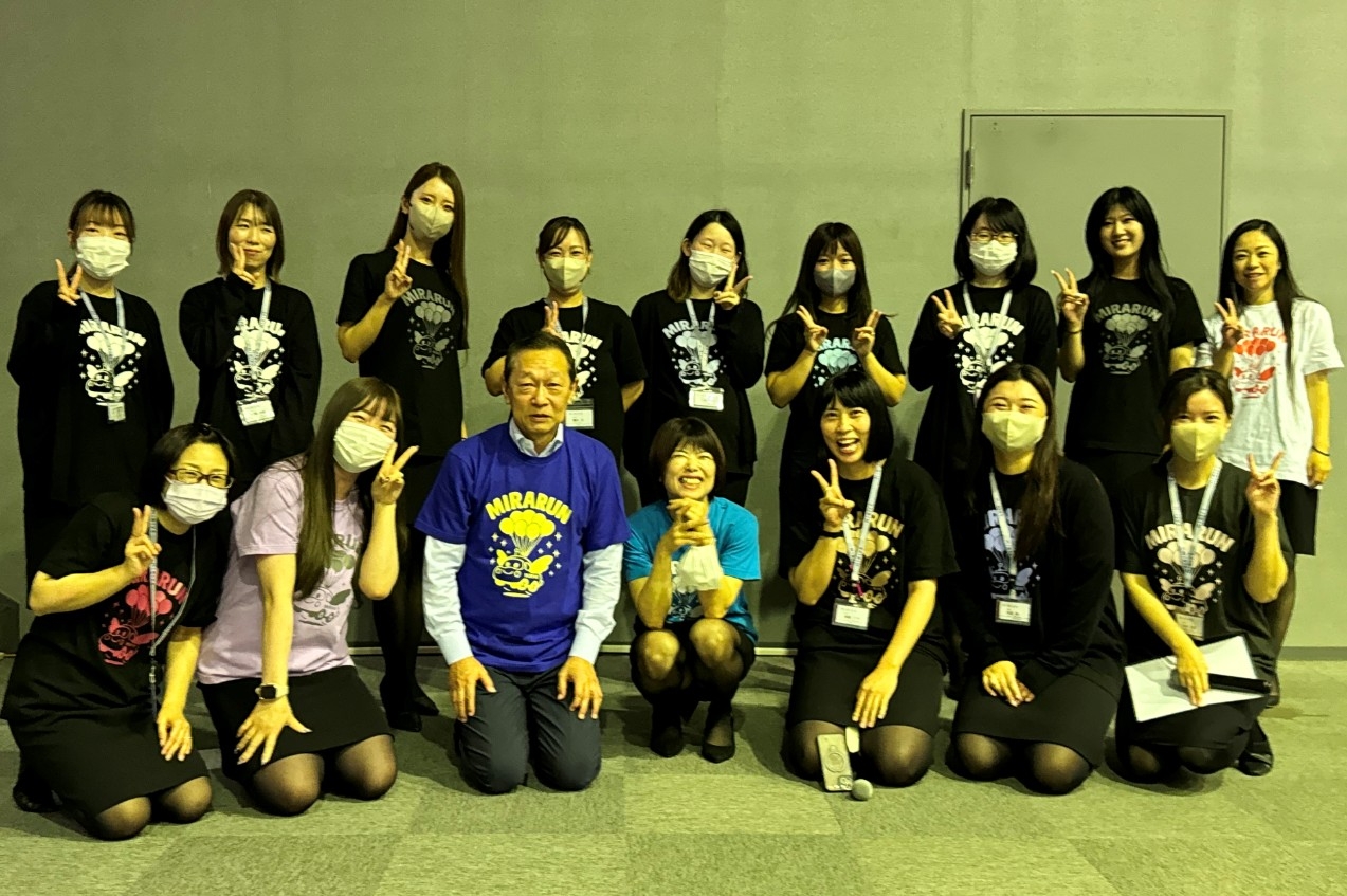 伊藤社長と遠藤実行委員長を女性スタッフが囲む