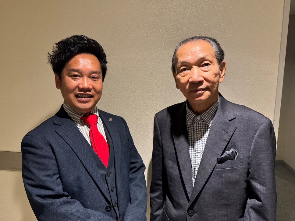 磯﨑常務(左)と「JUテントリ」の生み親であり名付け親の磯﨑孝会長