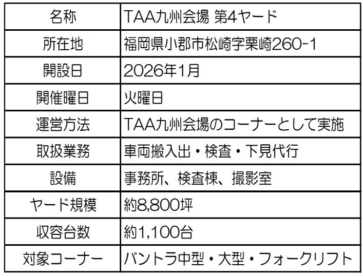 TAA九州に第4ヤード新設 - グーネット自動車流通