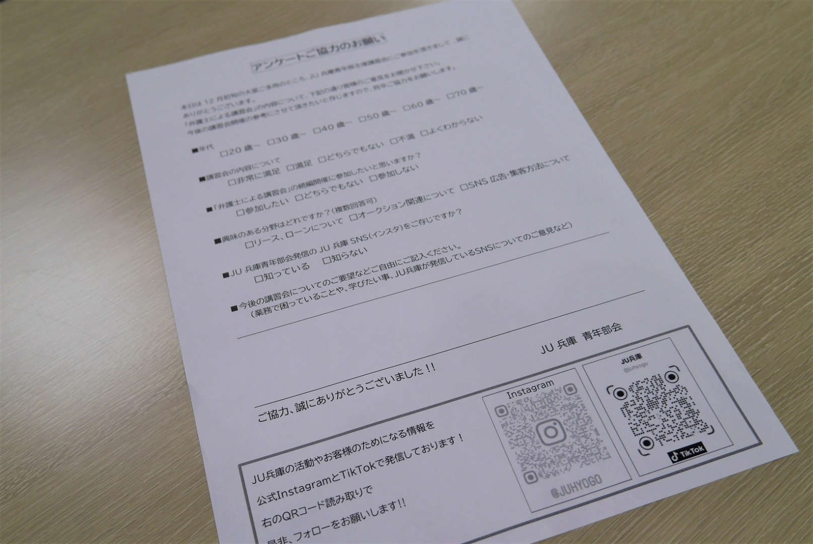 研修会受講者向けのアンケートにもSNSの告知