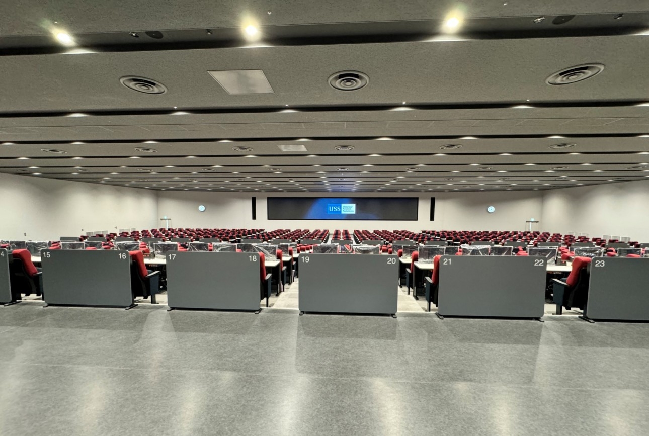 ゆるやかな傾斜で見やすく移動しやすいポス席