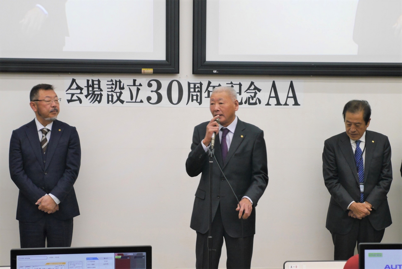 セリ開始前のセレモニーであいさつを述べる掛下会長