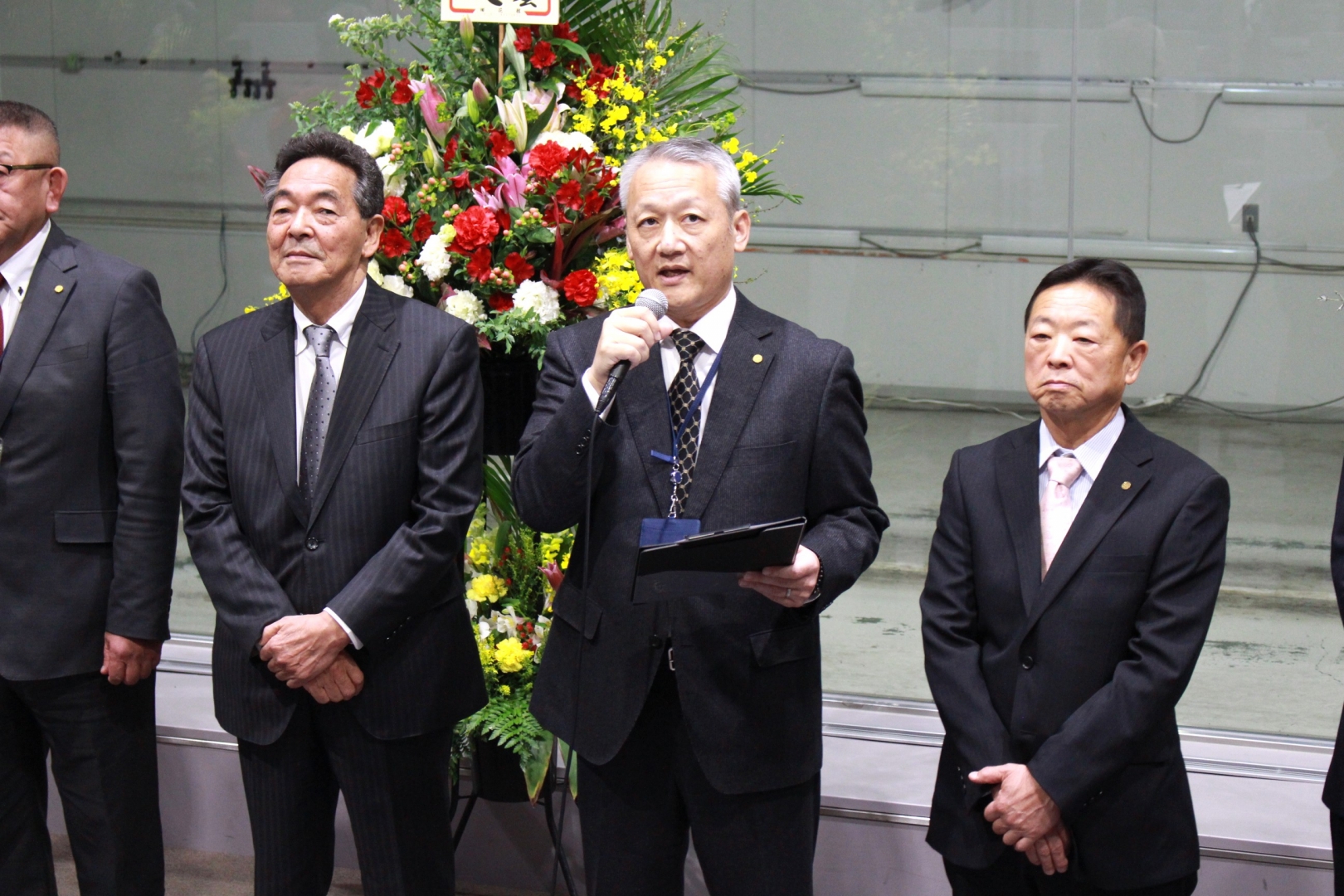 セレモニーで挨拶する近藤理事長