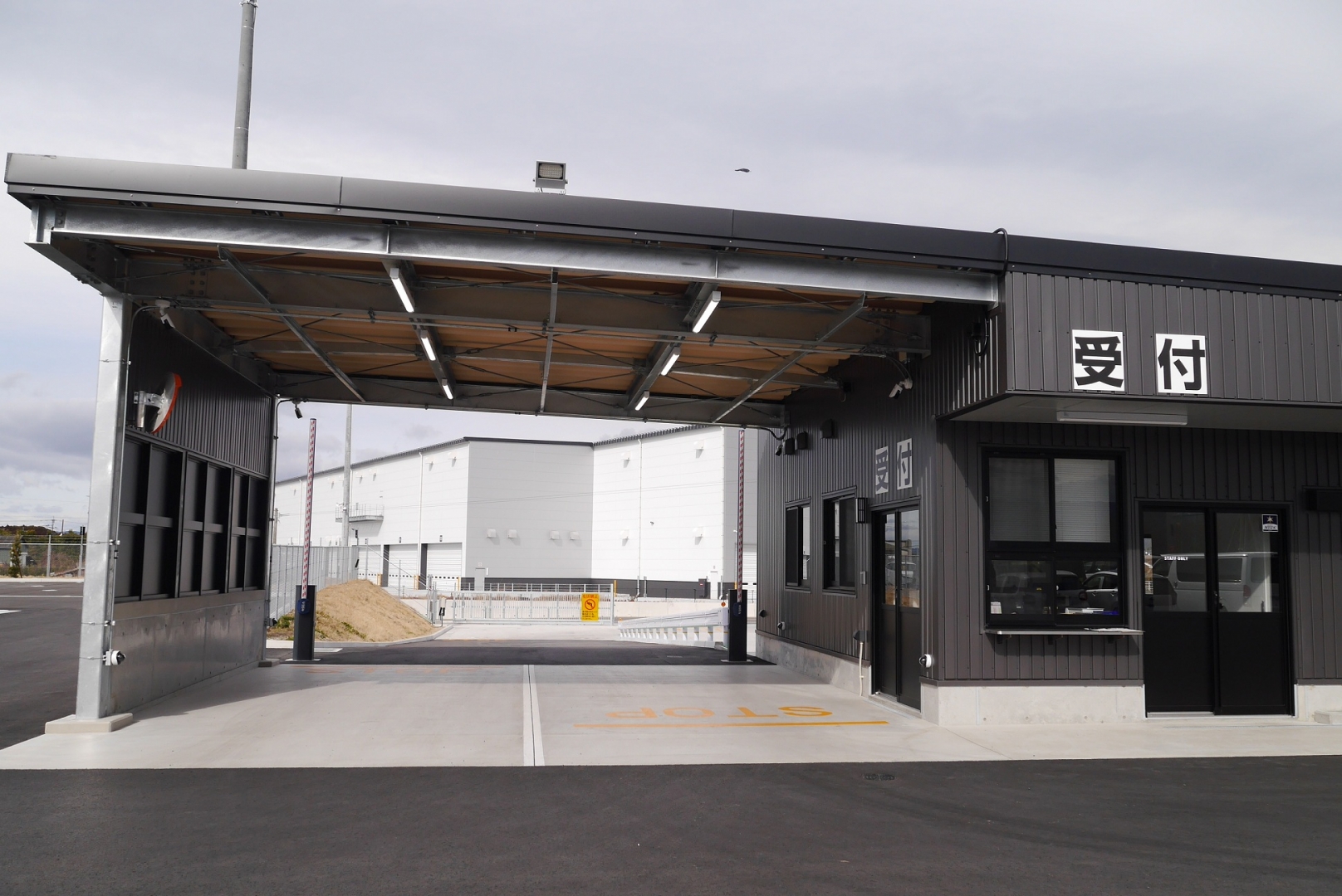 事務所棟には受付ゲート