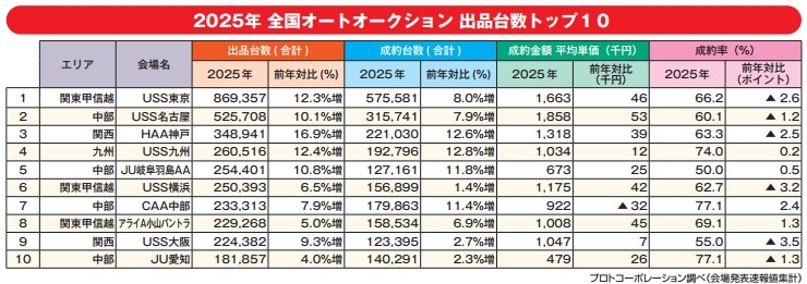 ②2025年全国オートオークション出品台数トップ10