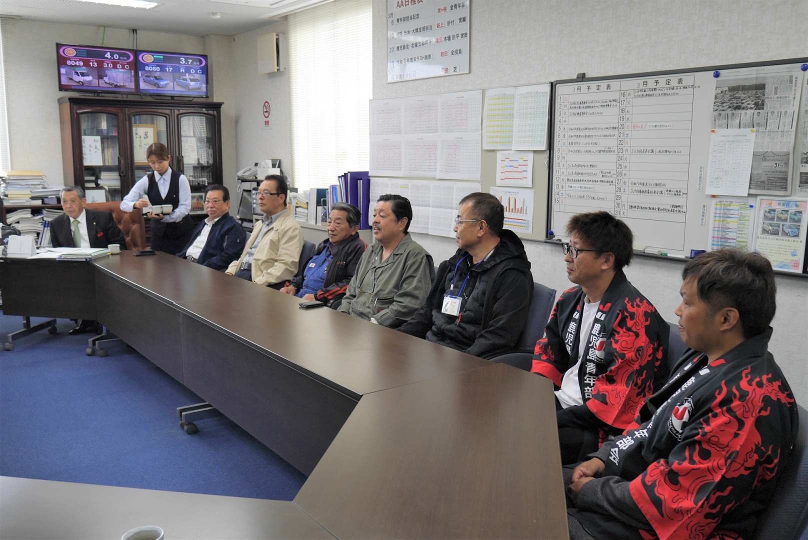 JU鹿児島側の出席者(写真左奥が新園理事長)