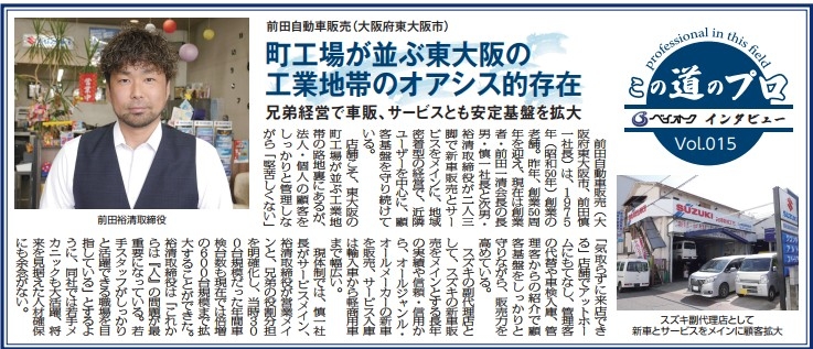 TOP > ニュース > 企業・団体関連ニュース > 【この道のプロ】Vol.015 前田自動車販売(大阪府東大阪市) > 画像一覧