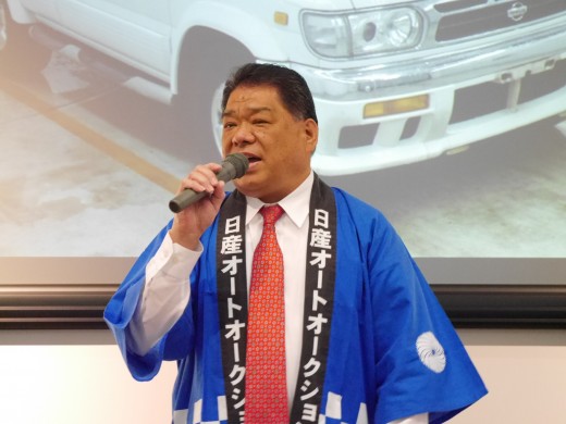 セレモニーで挨拶する日産ユーズドカーセンターの髙麗取締役