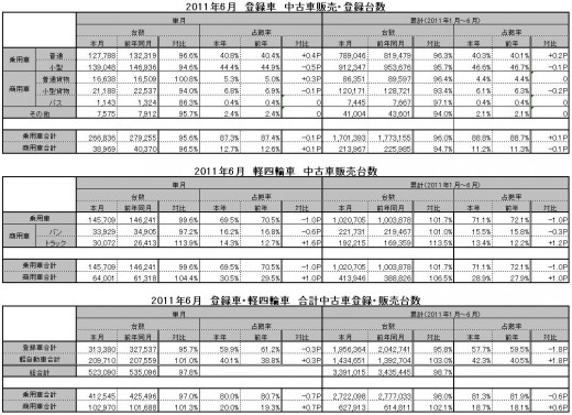 日本自動車販売協会連合会、全国軽自動車協会連合会が発表した6月の中古車登録・販売台数は、合計で前年同月比2.2%減の52万3090台。前年同月比は再びマイナスとなった。