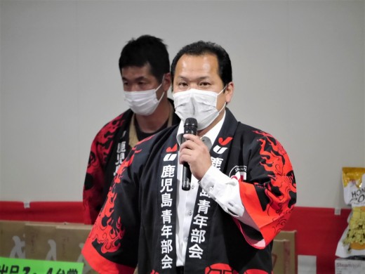セリ開始前のセレモニーでは岡元青年部会長が挨拶に立ち「目標500台に対し549台ものご出品をいただき、誠にありがとうございます。県外からも多数のご出品とご来場をいただき、本当にありがとうございます」と感謝の言葉を述べた。