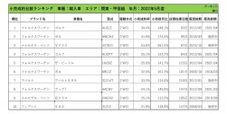 ユーザーに人気があるクルマの成約率や仕入れてから販売されるまでの平均店頭在庫日数、前月との比較データもございます。小画像には軽自動車と輸入車のランキングも掲載していますのであわせてご参照ください。
