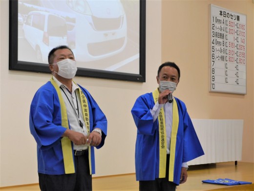 セリ開始前のセレモニーで長野理事長は「青年部担当記念AAに677台ものご出品をいただき、ありがとうございます。1台でも多く買っていただき、ご商売のお役に立てればと思います。最後までのセリ参加を宜しくお願いします」と感謝の言葉を述べた。