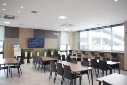 同会場の施設は、地元金沢を意識したつくりとなっており、カウンターは伝統工芸の「木虫籠(きむすこ)」をイメージ、また、応接室は金箔をイメージした和風となっている。また、食事スペースは木目を基調としたデザインとなっており、ゆったりとくつろぐことができる。一方、検査棟、撮影棟、立体駐車場には最新の設備を導入。検査棟はLEDライトを採用、またスポットクーラーを設置することで、精度の高い検査を行う。撮影棟は車両下廻り画像システムや光天井を設置することで、車両状態を正確に表現できる。また、防犯対策にも注力、門扉と守衛所にゲートを設置、外周には一面にガードレールを設置するなど対策している。くわえて、積載車ヤードに廃ペットボトルを素材に含んだアスファルトを使用、環境に配慮した取り組みが行われている。