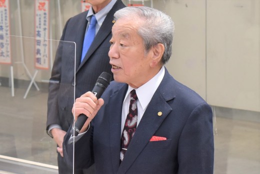 来賓あいさつでは、代表してJU中販連・海津博会長が「先ほど、日本カーシェアリング協会様との締結式に立ち会うことができた。JUとして引き続き社会貢献活動を継続していきたい。また、JU三重においては、奥村会長を中心に、発展をしていただきたい」と述べ、続いて、JU中部・松本富男会長が「JU三重のチームワークが1200台を超える出品台数に結びついた」と祝辞を述べた。