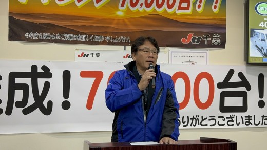 JU千葉はかねてより、会員に利用されるオークション会場を目指している。会員が利用したいと思うオークション開催の一つの指標として年間出品台数7万台を掲げ取り組んできた。今回の7万台達成までの間、コロナ禍をはじめ順風とは言えない市況の中で、出品台数7万台の目標に、執行部・事務局・組合員が一丸となって取り組んできた。その意味でも今回の出品7万台達成は大願の一つを果たしたといえる。