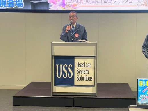 菅田幸康会場長は新会場オープンから7周年を迎えられたことに感謝を述べたあと、「全国のUSS会場で開始されているデジタル出品ならびに下回り&タイヤ画像の追加サービスについて札幌会場でも年内を目途に稼働していく予定のため是非ご期待いただきたい。また、1台でも多くの出品、一人でも多くの参加、1台でも多くの成約に繋がるよう努めていきたい」と話した。