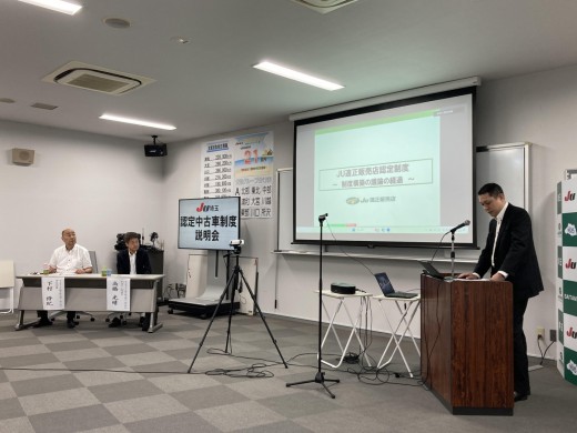 JU埼玉(さいたま市岩槻区、添野健会長・理事長)は6月28日、JU埼玉適正販売店向けに同店認定中古車制度説明会を開催した。この説明会では、適正販売店認定制度、中古車の支払総額表示に関する改正規約、JU埼玉適正販売店認定中古車の概要、グー鑑定書の活用についての詳細が提供された。