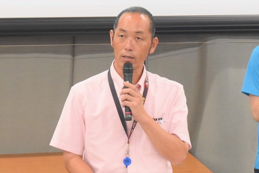 セリ前のセレモニーで中川貴史流通委員長があいさつに立ち「当日出品を含め目標850台に対して、850台の出品をいただき感謝いたします。本日は、モーニングセリ、キッチンカー、サイコロチャレン等の企画をご用意しました」と述べた。