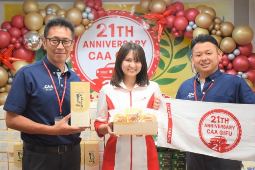 セリ前のセレモニーでは、柘植洋輝取締役があいさつに立ち「岐阜会場は2004年8月に第1回オークションを開催し、会員皆様のご支援で21周年を迎えることができました。この周年記念を『再スタートの日』と位置づけ、皆様への感謝を改めて胸に刻むとともに、これまでの歴史に甘んずることなく、原点に立ち返り、皆様にとって『価値のあるオークションとは何か』を追求して参ります。岐阜会場では、6月に出品コーナーの編成を行い、初出品コーナーの台数は昨年度に比べ増加し、新鮮な車両が集まる、活気あふれる会場に変化しつつあります。変化の激しい市場環境にあっても、存在感をしっかり発揮できるよう、スタッフ一同、力をあわせて挑戦して参ります」と述べた。