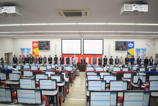 セリ開始前のセレモニーで、山本理事長は「目標台数650台という中、意識高く持ち、一丸となって、集荷に取り組んでことで、目標の方クリアできました。良質車もたくさん集まっております」と述べた。続いて、来賓を代表してJU中部・奥村悦二会長が「リレーオークションは、組合事業の活性化事業となっております。このJU石川におかれましても、皆様方のご協力いただき、良いオークション会場にしていただきたい」と祝辞を述べた。