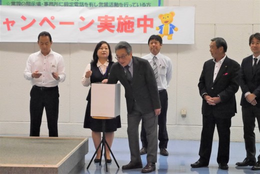 JU九州流通委員長としてあいさつに立った出口理事長は「九州は一つとして、各商組の流通部門を盛り上げていければ幸いです。引き続き、ご協力宜しくお願いします」と、話した。