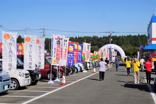 JU熊本(満田和浩会長・理事長)は10月11、12日の2日間、西原村のJU熊本AA会場で「JU熊本感謝祭」を開催した。昨年に続き、2回目の開催に会員各社が約250台の展示車を揃えて中古車展示を行ったほか、さまざまなステージイベントやキッチンカー、地元警察の協力によるパトカー、白バイの展示など、感謝祭らしいお祭りイベントで大いに盛り上がった。
