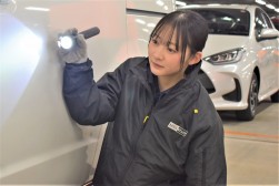 (山森さん)一番楽しいと思う瞬間は、きれいに修理してある車の損傷(修復歴)を見つけた時です。難しさについては、検査の質を落とさずに台数を上げなければいけない点です。特に名古屋会場は搬入台数が多いので難しいと思います。