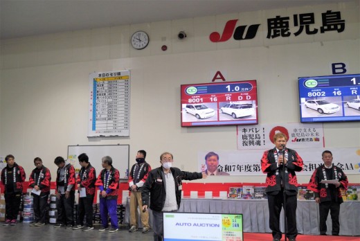 JU鹿児島(姶良市、新園康男理事長)は12月12日、「令和7年度第4回青年部会担当記念AA」を開催した。タマ不足の厳しい市場環境の中、宮田大青年部会長を中心に青年部会メンバーが集荷に努め、出品台数は目標の550台を大きく上回る611台に上った。このうち321台を成約し、成約率は52.5%だった。